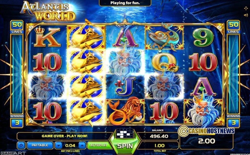 Atlantis World adopts an underwater mythological aesthetic, centered on the submerged ruins of the fabled lost city. The visual presentation focuses on a serene aquatic palette, featuring high-fidelity renderings of Poseidon, golden dolphins, and ancient artifacts. The sound design is engineered to evoke tranquility, utilizing an enchanting, ambient soundtrack that transitions into more percussive rhythms during Wild stack landings and bonus triggers.