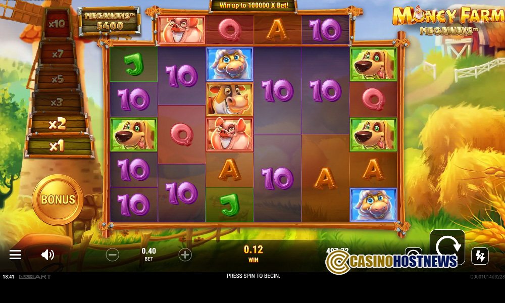 Money Farm Megaways revisits the successful farmstead aesthetic of its predecessors, focusing on high-fidelity animal characters led by the series’ signature chicken. The visual presentation is vibrant and polished, depicting a lively barnyard environment with detailed animations for the expanding “Win Mill” and golden egg symbols. The audio design maintains the playful, energetic tone of the franchise, escalating in tempo during the cascading win sequences and the high-stakes Free Spins round.